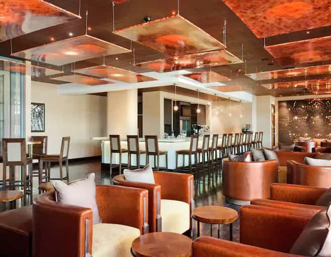 From the exterior, the Windhoek Hilton strikes an ultra-modern figure, with a metallic-glass turret and a staggered profile. Walk inside to the classic trappings of a refined hotel: marble floors, a raindrop chandelier, a grand staircase. Throughout, you'll find a number of restaurants and bars. The Skybar serves up cold local and international brews and fancy cocktails, with a view. D'vine offers fine dining and wine and cheese pairings in an elegant atmosphere. The spa offers a number of massage and beauty treatments, while the gift shop stocks a number of local souvenirs.