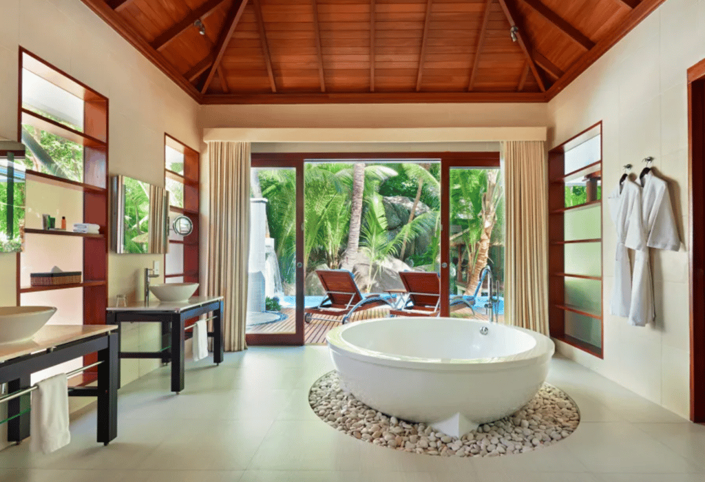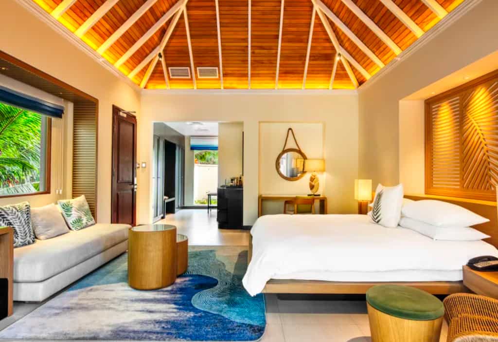 The Hilton Labriz Resort & Spa has a wide range of accommodation options ranging from island chic rooms, complete with private gardens and outdoor rain showers, to secluded luxury suites with private patios. For the ultimate luxury opt for a King Deluxe Villa, which comes with direct beach access, panoramic views of the Indian Ocean and an enormous private pool. All villas include daybeds, sun loungers and private dining tables, and the pretty interiors are a blend of Seychellois and modern décor with high ceilings, dormers and French doors.