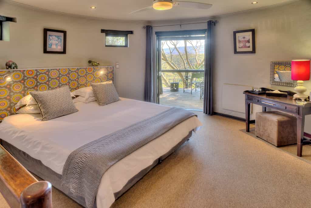 Hog Hollow Villa is a stylish, country-quaint double-storey villa set a short distance from the main lodge. It's been designed especially for couples or families, so everyone will feel right at home. Each of the three bedrooms is tastefully fitted in family-friendly style, and each has its own en-suite bathroom. Outside is an expansive deck that offers gorgeous mountain-rimmed views, and a crystal-clear infinity pool. Expect leather couches in the lounge, a music system, TV and DVD player.