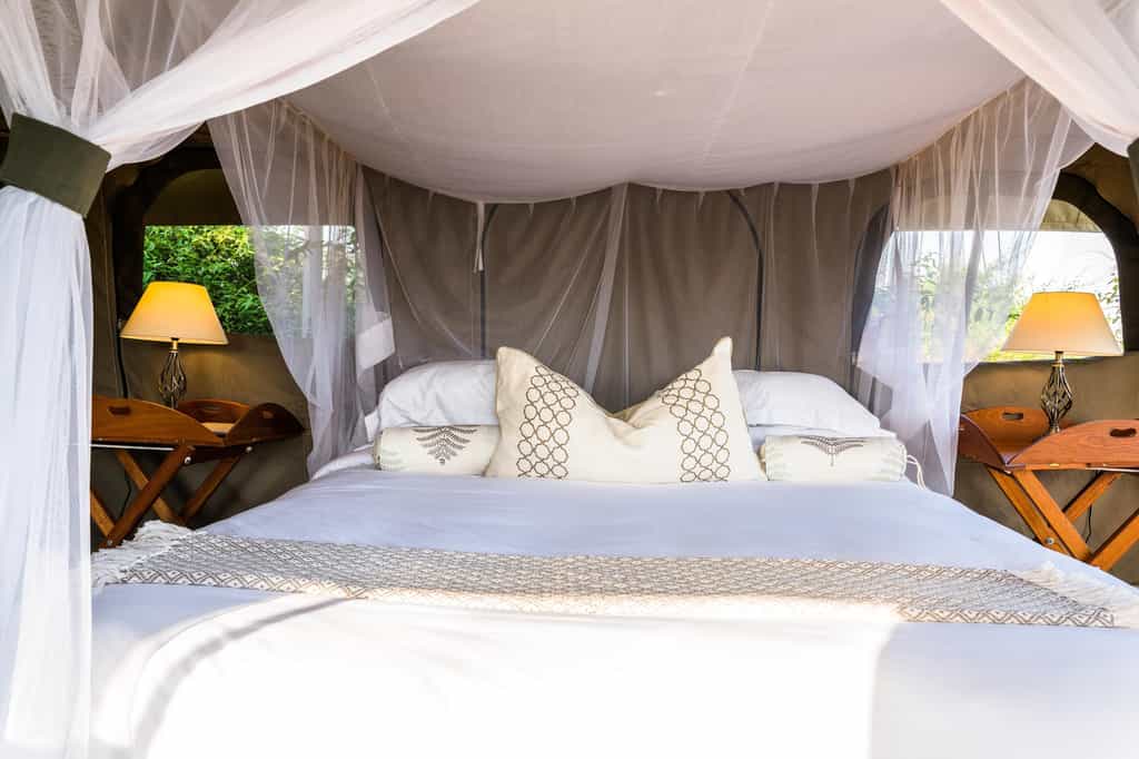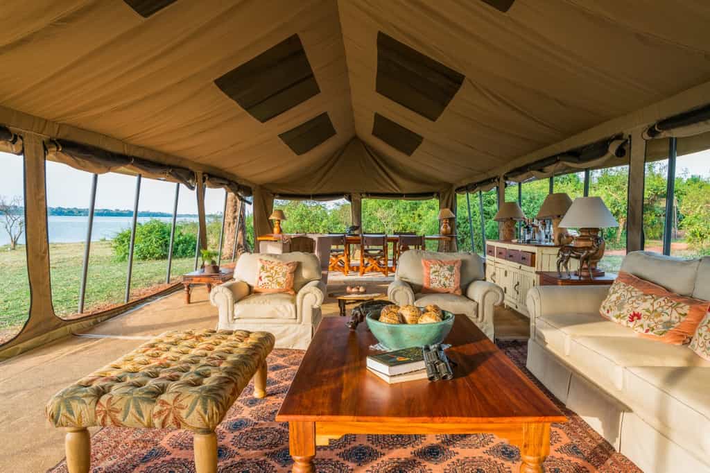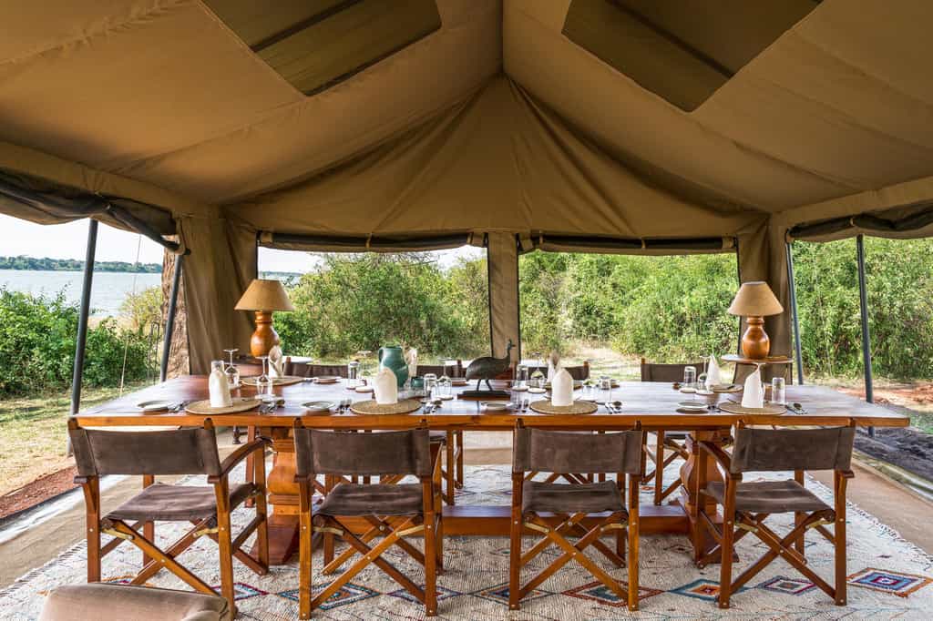 Five elegantly appointed canvas tents perch directly on the channel's edge, each positioned for ultimate privacy and those jaw-dropping views. Think cosy alpine meets safari chic – beautiful soft furnishings, wooden details and that all-important outdoor bucket shower. The pièce de résistance? Massive windows that frame the Kazinga Channel and distant Rwenzori Mountains, meaning you can lie in bed watching wildlife come and go. En-suite bathrooms keep things comfortable, but it's that front-row seat to nature's daily comings and goings that really counts.