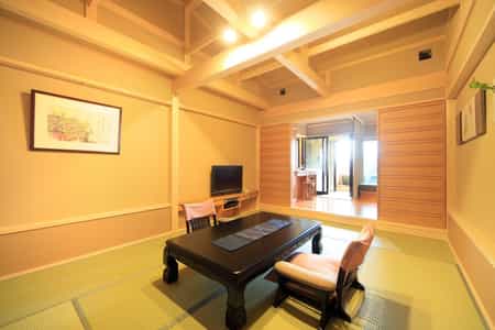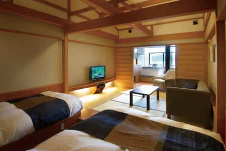 Standing on the hill leading to Shiroyama Park and the remains of Takayama Castle, surrounded by greenery, Hoshokaku is about three-minute walk from Jinya early-morning market, the old town and other popular sightseeing spots. An authentic Japanese style inn, it prides itself on its tranquil atmosphere. Upon entering the hotel, visitors’ eyes are drawn to the imposing ceiling beams and the tatami passageway leading off the hall. The Japanese-style rooms display the beauty and skill of Hida architecture and craftsmen, while the western and combined Japanese-western rooms offer luxurious comfort.