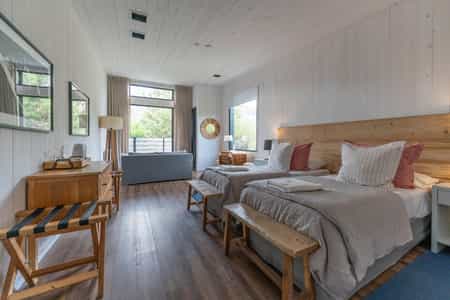 The lodge is nestled against the sides of the slopes that lead to the Fitz Roy and beyond, and is surrounded by charming gardens. Common areas are simple yet inviting, and full of warm tones, and there's a small lounge where guests can sit in front of the fire and enjoy a glass of wine after a day of hiking. In the dining area, the breakfast buffet features mountains of fresh fruit, pastries and eggs to order. The team looking after you is bend-over-backwards helpful, so don’t hesitate to ask for a packed breakfast if you have an early departure.