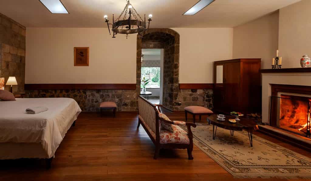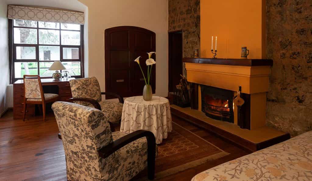 The hacienda is invariably grand, with walls of volcanic stone and gardens alive with greenery - and a wishing well for good measure. The restaurant has a medieval feel with studded wooden chairs and plated windows where Chef Alfredo serves a fixed menu of Ecuadorian and international fare - don't miss the trout! The lounges and hallways are lined with bright, floral couches and gilded oil paintings, and there's an authentic Spanish chapel on the grounds, which is definitely worth a visit.