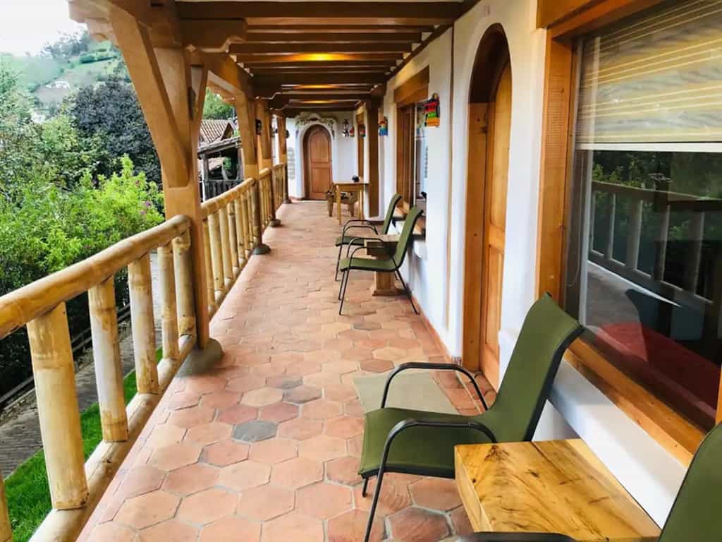 The rooms are cosy and neat, with large wooden beds decorated with bright bedspreads and cushions, and walls lined with images of the Avenue of Volcanoes. Each room has a private sitting area and some enjoy a balcony with a hammock - we don't blame you if a nap is first on your list, as you'll wake up to that view. The bathrooms are well-appointed with a circular shower and pleasant amenities. Certain rooms also enjoy an open fireplace for the chilly mountain evenings.