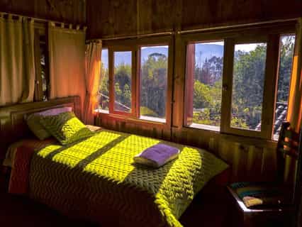 Set in pretty, vibrant gardens, the Hostal is actually a group of pretty buildings, all featuring white balconies and peaked roofs. The dining room is filled with multi-coloured table cloths and bold paintings, and Mama Hilda serves her tasty local cuisine and handmade pasta and desserts arrive fresh from the Italian monastery down the road! In the annexe, there is a cosy bar and lounge with far-reaching views of the valley and periwinkle sky above.