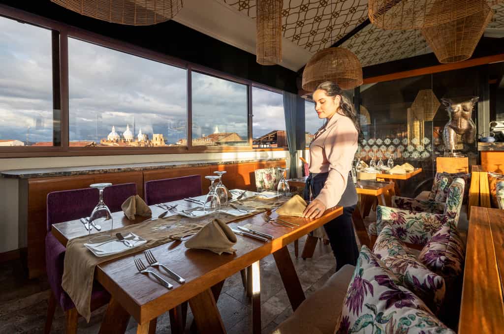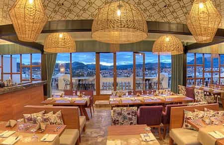 Behind its rosy shell, you'll find exposed brick walls, lavish sofas, and hallways lit with crystal chandeliers. On the third floor, the restaurant enjoys sweeping views across Cuenca through wall-to-wall windows or from the scenic balcony. Sitting under the glow of bohemian lamps, you'll tuck into a menu of gourmet dishes inspired by the provinces of Ecuador and their traditions. Decorated with mustard, floral seats and polished wooden tables, the bar offers signature cocktails - they're especially good at sunset.