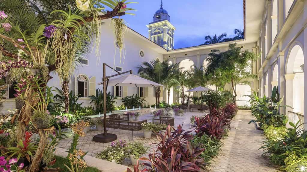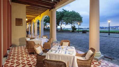 The hotel features a number of colonnaded lounges with funky, high-backed armchairs and modern artwork. You'll also find two patios, one filled with trees and cushy places to relax, and the other, a casual restaurant. Around sunset, head to La Pergola for cocktails, and for dinner, try Casa Julian, one of Guayaquil's finest eateries that serves a mean menu of Ecuadorian cuisine the steamed shrimp buns with curry are exquisite. In the bell tower of the restored Gothic chapel, you'll find a massage room with idyllic garden views.