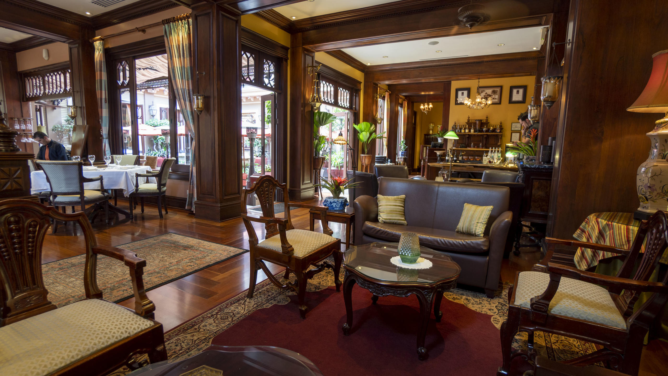 Dominated by heavy wooden columns, the lounge and restaurant are elegant and airy with plush rugs and plenty of tropical greens dotted around. The best seat, though, is in the pretty atrium for a candlelit dinner of French-Mediterranean fare, accompanied by a cocktail or vintage wine. On the rooftop terrace, you'll find a pair of hot tubs and sun loungers, while massages are offered at the small spa. Visit the gift shop to pick up handmade crafts and souvenirs to remember your trip by.