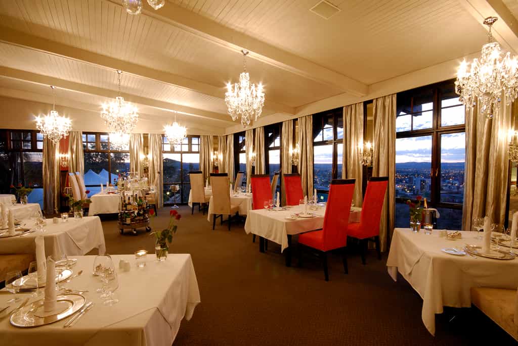 The Garden Terrace, with its panoramic views of the city and its surrounding mountains, is a popular spot for sundowners or afternoon tea, although breakfast, lunch and dinner can be eaten at the umbrella-shaded tables here too. Leo's at the Castle Gourmet Restaurant, which overlooks the Windhoek skyline, has a reputation for serving the best cuisine in the country. Beneath the restaurant is a large and well-stocked wine cellar, the Felsenkeller. Gather here for a German-style brunch.