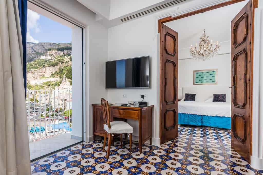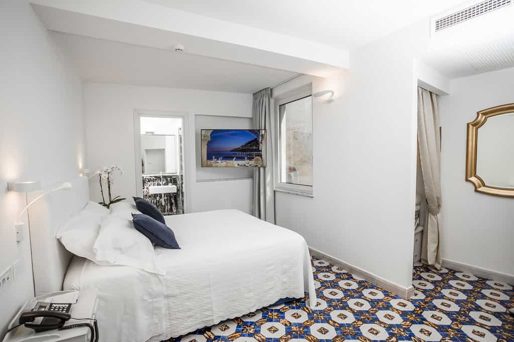 Each room, be it a suite or a standard room, is a reflection of the Mediterranean ethos - simple, elegant, and comforting. The rooms are spacious, furnished elegantly, and equipped with balconies or large windows that serve as your personal frame to the Amalfi coast's picturesque scenes