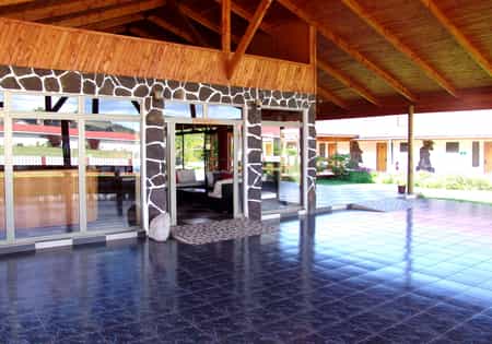 The open-air common areas feature traditional Rapa Nui motifs and natural materials. A simple breakfast is served each morning, setting you up for a day of exploration. The centerpiece is the outdoor pool, surrounded by loungers for those between-adventure breaks.