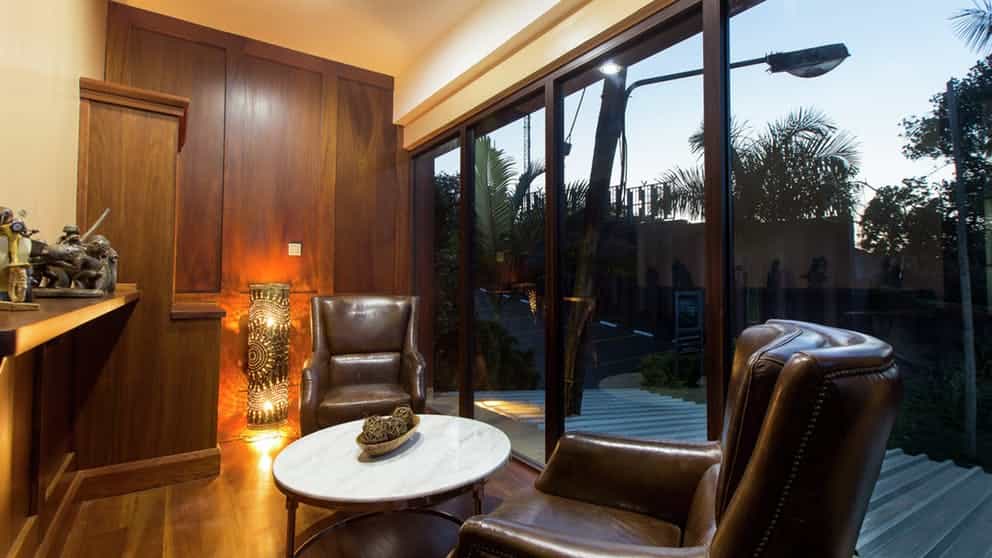 The compact but smartly arranged communal areas lend themselves to leisure, furnished neatly with traditional art and some quirky modern touches. The bar is small but well-stocked; Shiima Restaurant offers undercover patio dining, with delicious dishes and good company. Palm trees and ivy-clad walls shelter the property from neighbourhood noises, and the small pool provides solace from the midday heat. The gym (with aircon) has key equipment (including yoga mats); the modern conference centre can host up to 40 people.