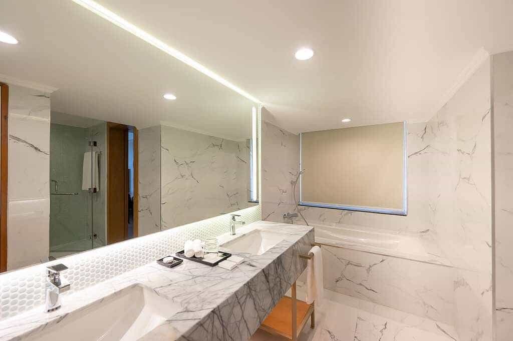 Rooms are airy and elegantly designed, with floor-to-ceiling windows framing impressive city views. Expect plush bedding, a well-appointed workspace, and a sleek bathroom complete with a walk-in rain shower. Modern amenities like high-speed Wi-Fi, a flat-screen TV, and a coffee maker ensure a comfortable stay. Upgraded suites add extra luxury with separate living areas and access to an exclusive lounge for those seeking an elevated experience.