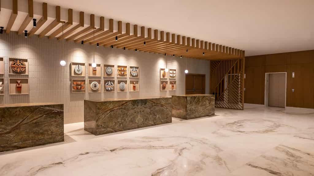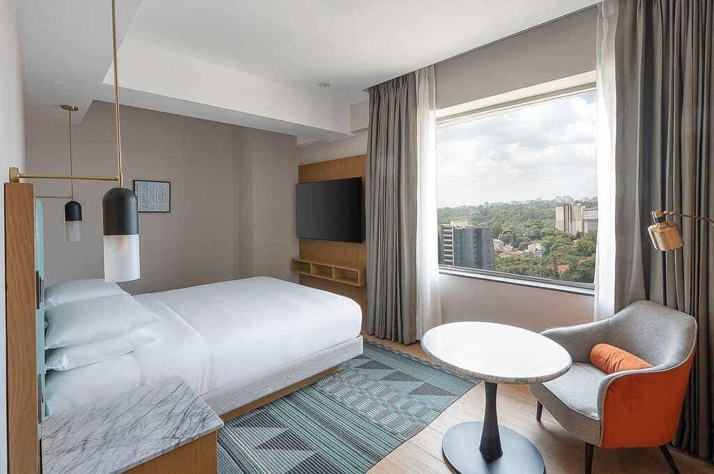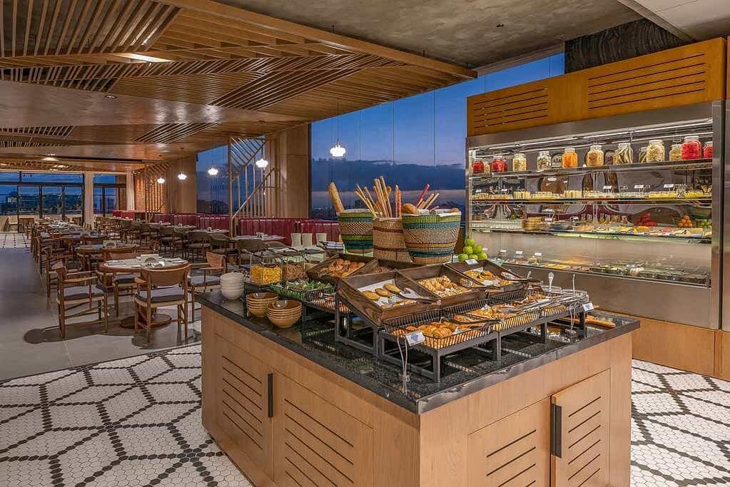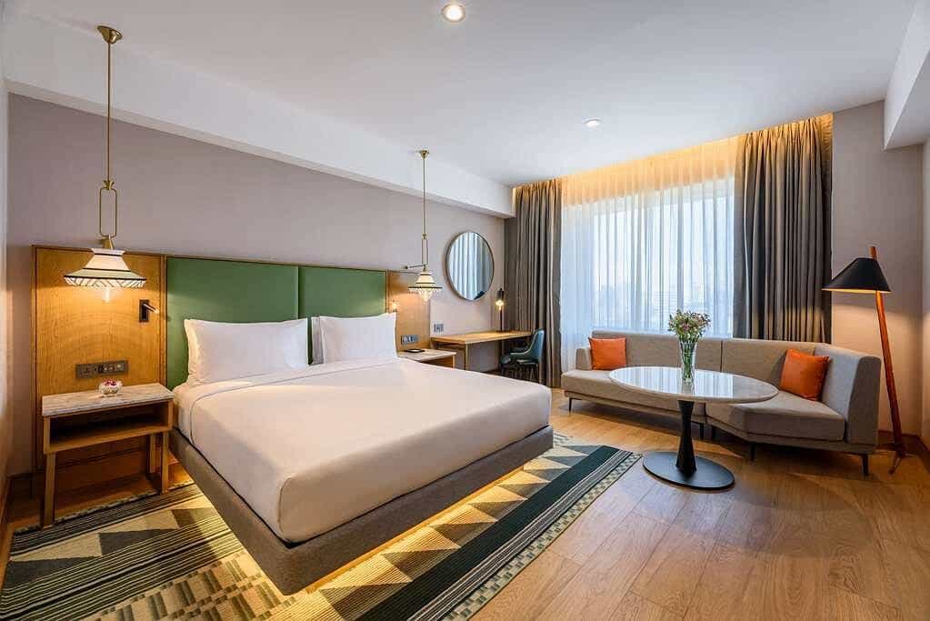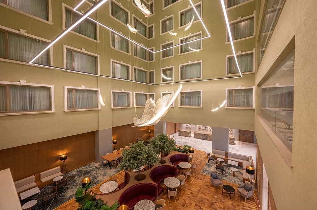 The rooftop pool and bar are standout features, offering a stunning panorama of the city—a perfect place for sunset cocktails. Inside, you’ll find a range of dining options, from casual cafés to upscale restaurants. The lobby's contemporary décor and comfortable lounges provide a seamless blend of business and leisure, while the fitness centre and spa await for a rejuvenating break from your urban adventures.