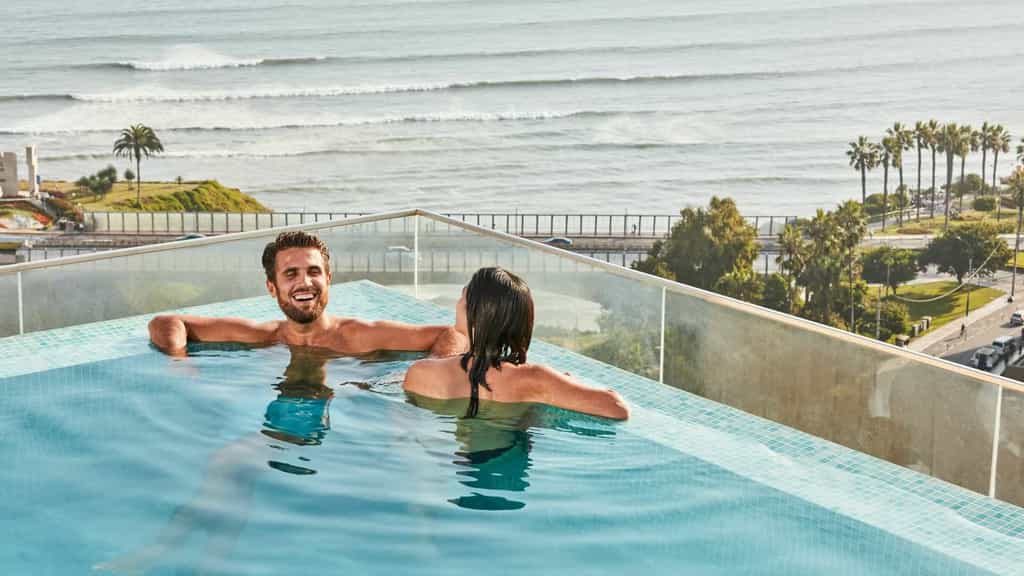 The 5-star Iberostar Selection Miraflores hotel offers you a rooftop terrace with a pool and a glass-enclosed lounge bar, allowing you to enjoy views of the Pacific Ocean from the first hotel in Lima to be free of single-use plastic. In addition to the fitness center and spa with a sauna, you can visit the Ortega & Huamán and 27 Tapas restaurants, which offer a fusion of Peruvian and Spanish gastronomy directed by renowned chef Carlos Testino. Along with its bold design inspired by the beauty of the Pacaya Samiria nature reserve.