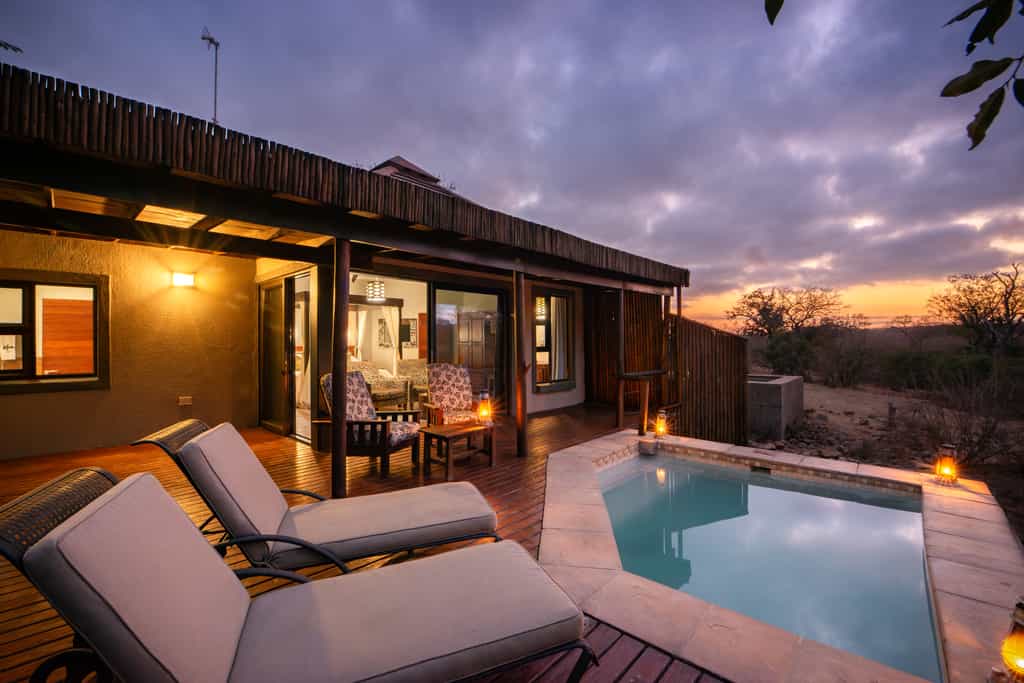 Set on a shaded grassy patch, the thatched bar and entertainment area is where you'll spend most of your time chatting to other guests, playing a round of who spotted the best animal or took the best photograph. The camp is frequented by a number of smaller animals such as nyala and warthog that can be watched from the open lounge, while the pool area offers sightings of numerous birds. The excellent game viewing makes Idube worth every penny.