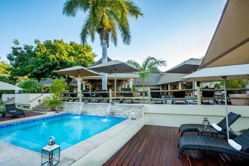 The main lodge has comfortable seating areas, the award-winning Palm Restaurant, which has an à la carte menu (ostrich steak is a must) and patio seating accompanied by the roar of the falls. Don't miss the huge and excellent breakfast buffet. The service is friendly and laidback to suit the hotel style. The lovely gardens are regularly visited by warthogs, monkeys and mongoose - and if luck is on your side, an ambling elephant. And the pool provides a spot to cool off with a cocktail.