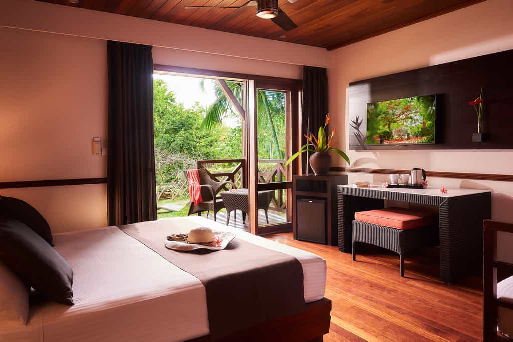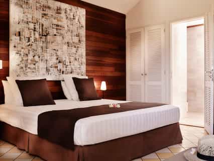 The 80 rooms and bungalows fall into six categories, but all are fitted with air-conditioning and en-suite bathrooms. Top of the pops is the tropical bungalow, placed in the garden with a lovely terrace. Next to a dedicated swimming pool, rooms in the double-storey Creole Villa have a breezy charm and a view of either the ocean or the pool. There are 20 kitchenette bungalows, perfect for more independent travellers, and a family unit for four, complete with an en-suite bathroom and separate shower room.