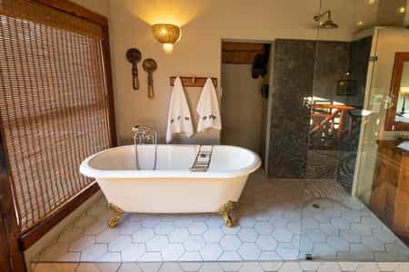 There is a large dining room and lounge area with a distinct African ambience, as well as a large terrace for brunching or dining under open skies. Meals can also be privately served around the campfire in each villa’s boma, which is ideal for families and small groups, who prefer their privacy. Complimentary internet access is available. Guests can get a workout at the small but well-equipped gym or read a book from the small library.