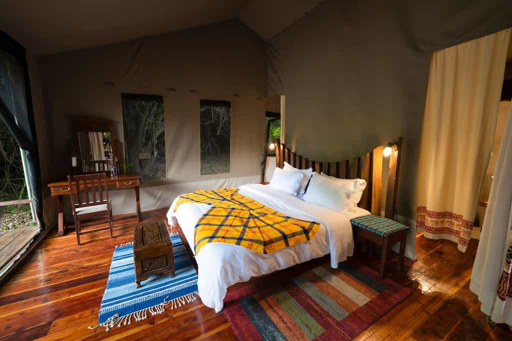 This intimate property has only 9 rooms in total. There are 7 traditional Meru-style tents with ensuite facilities and a furnished private verandah looking out over the mini savannah. There are also two larger tents perfect for honeymooners or families. The grandest is their private villa, which features two rooms, a lounge area and plunge pool.
