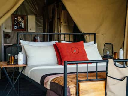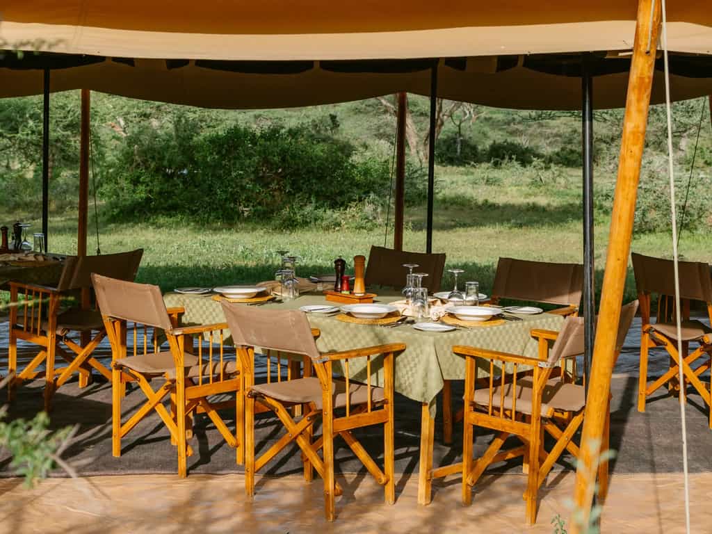 After the drama of viewing the migration, you need space to relax. Spacious but cosy, the lounge tent provides just that, and is just the place to sit back, sip something chilled, and reflect on the day's outings in quiet comfort. And whilst the camp may be rustic, that doesn't mean you can't dine in style. The home-cooked meals are excellent and ease perfectly into a nightcap at the communal campfire to trade stories and discuss what tomorrow might bring...