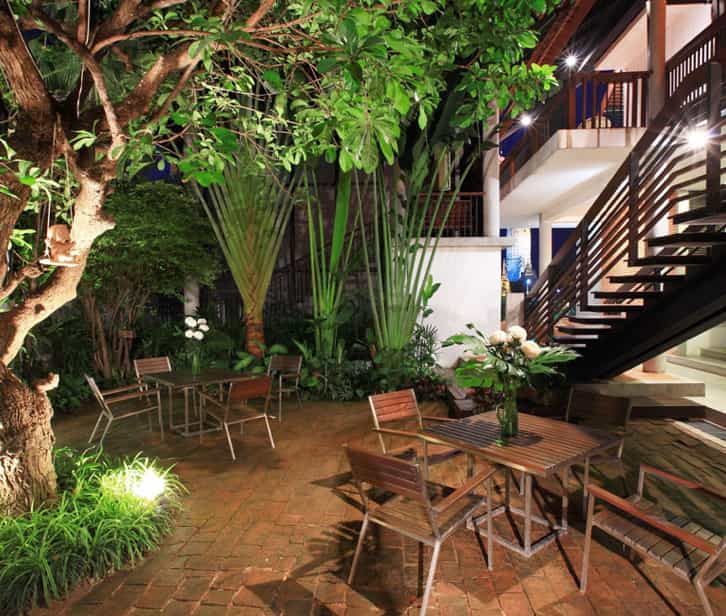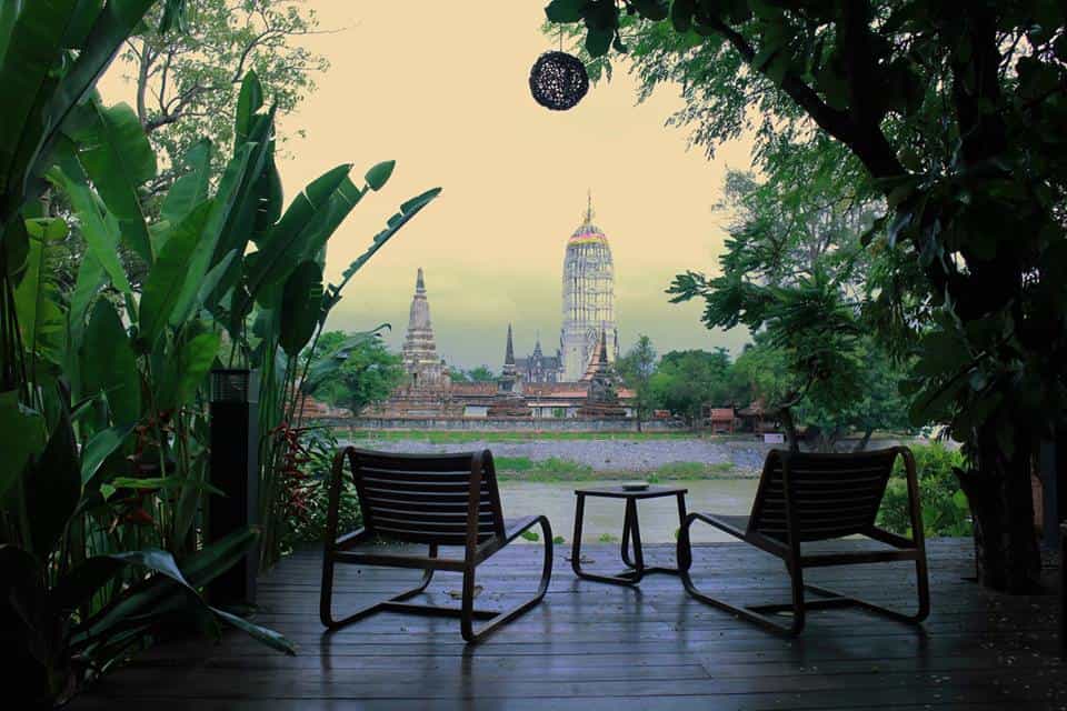 iuDia offers a modern take on Thai sensibilities with a minimalist design accented with intricate arches and vintage pieces. Meals are served in the cafe, which offers a menu of Thai, Lanna and more western-inclined cuisine. There is a collection of greenery-clad courtyards for a cuppa or cocktail, while the real happy hour happens on the rooftop terrace with views of the river and ruins. The pool sits right next to the river where you can watch longtail boats float by.