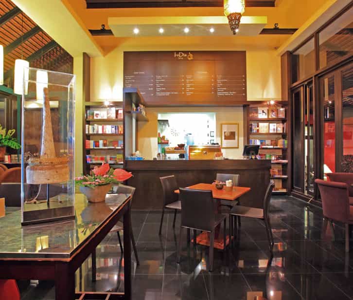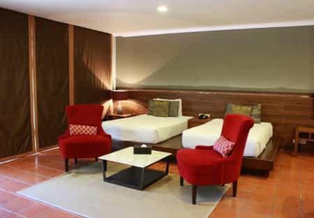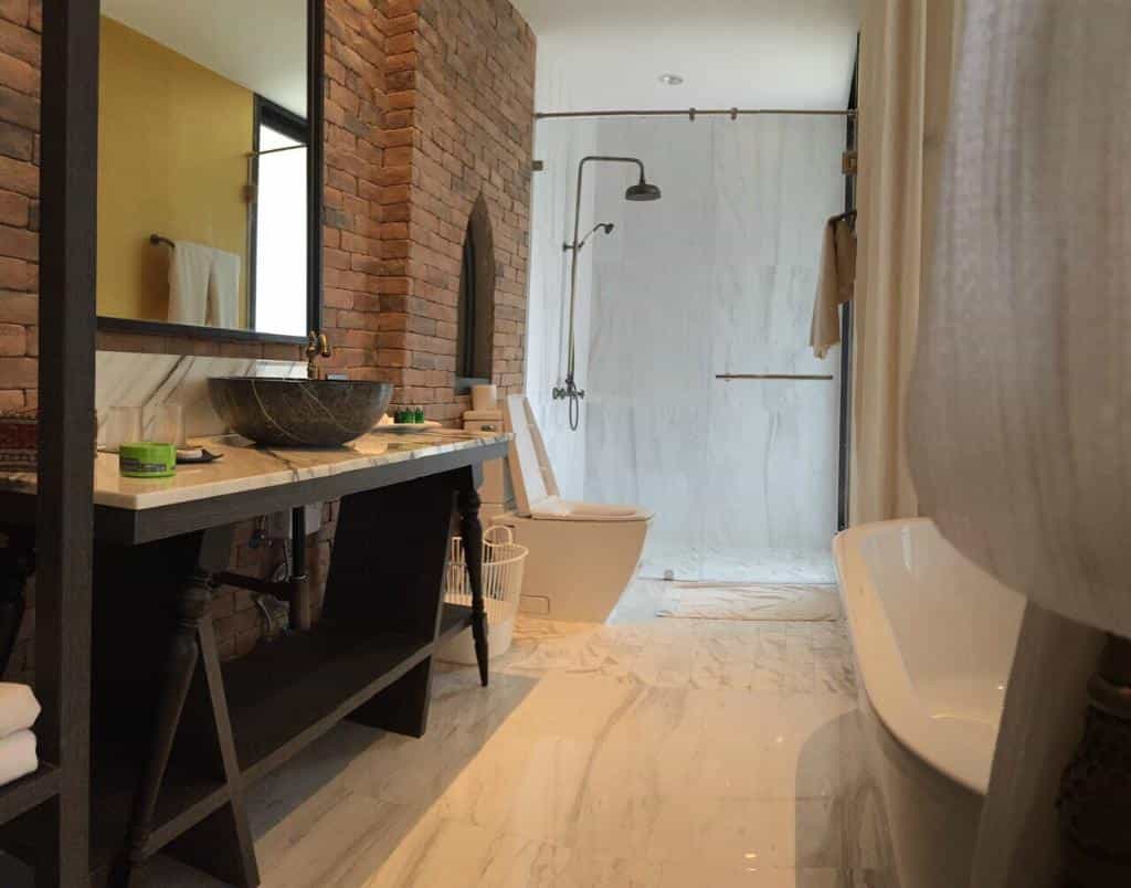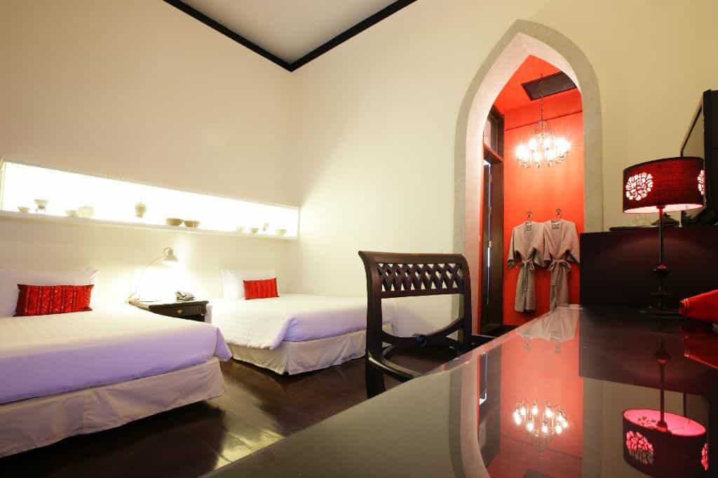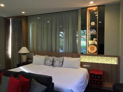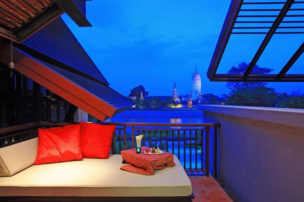 A relatively small hotel, iuDia on the River has 11 rooms and suites, which are decorated in cool, muted tones and mod furnishings alongside vintage pieces that hark back to Ayutthaya's past. Each room has a sitting area, large bed, and a satellite TV. The bathrooms are moodily-lit with indigo walls, ornate mirrors and pendant lamps. Some of the larger suites have an open-plan design with a large tub behind glass, and enjoy views of the 14th-century Wat Phuttaisawan.