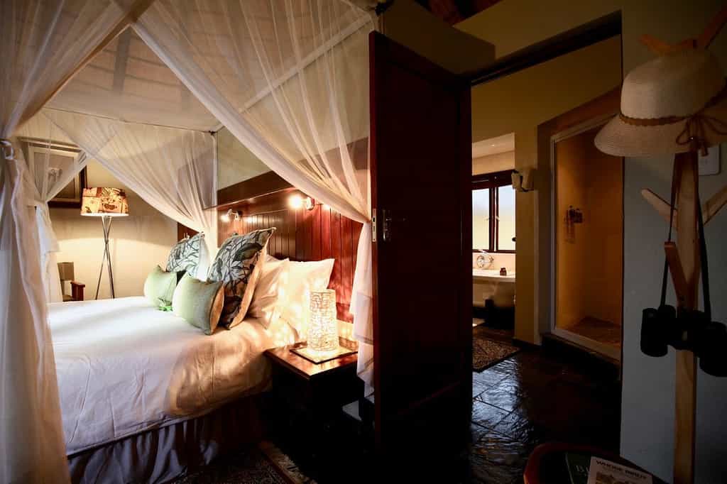 Completely unwind in one of five luxury, Kruger-style rondavels each onlooking the Klaserie river and with expansive views of the bush beyond. Each rondavel is decorated with its own personal touch of Old Africa where you can enjoy a perfect blend of rustic authenticity and modern luxuries. Each room is also equipped with an en suite bathroom that includes a shower and bathtub for you to fully relax and appreciate the tranquility of the wilderness.
