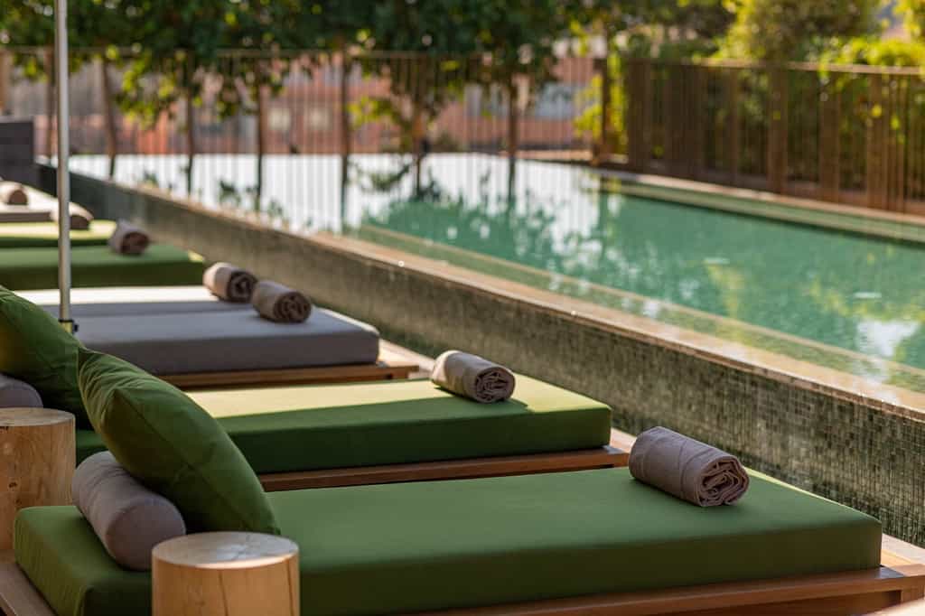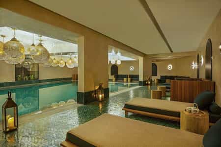 In the heart of the legendary Hivernage district, a few feet only from the rose-hued rampart of Marrakech, vibrate an urban boutique hotel with contemporary style and unique elegance: JADALI HOTEL & SPA. Masterfully imagined by the famous interior designer, Imaad Rahmouni, JADALI HOTEL & SPA holds its eclectic style and character from its idyllic location, a distinguished edifice that differentiates by a refined and minimalist architecture, embellished by a green façade, a true emblem of the legendary Hivernage. Order, colors and geometry, here the essence of the Art Deco style is brought to light where each space is a journey of the senses: contemporary aesthetics, vintage-inspired tailor-made furniture, sophisticated and warm color palettes, noble materials, and epicurean experience, panoramic views and a multi sensorial universe merge magically with impeccable service