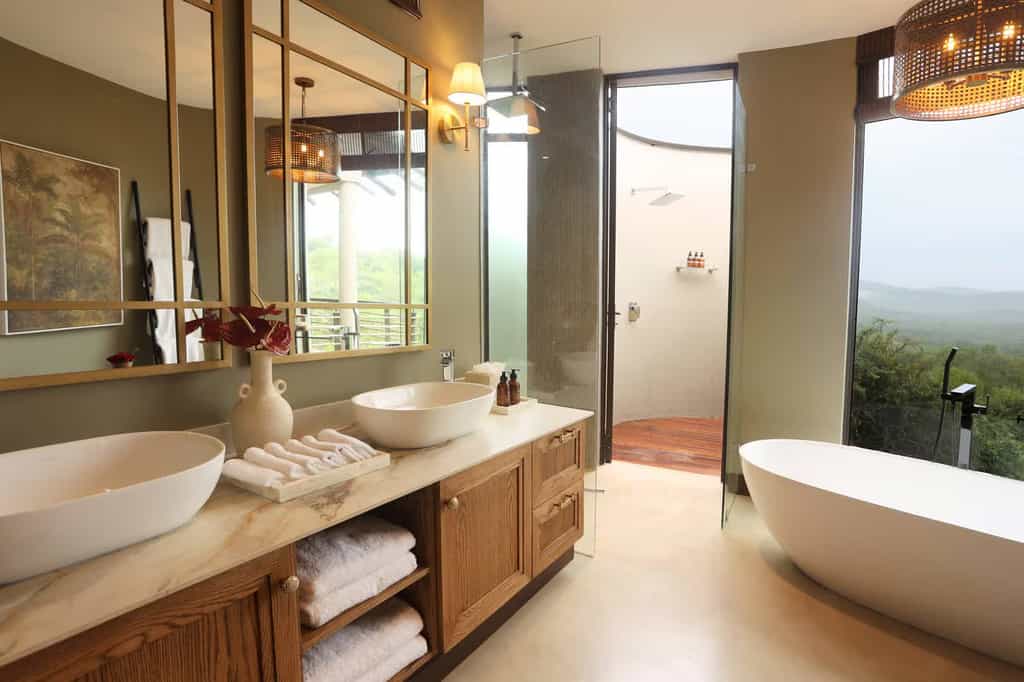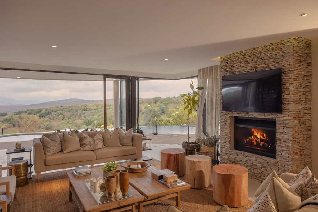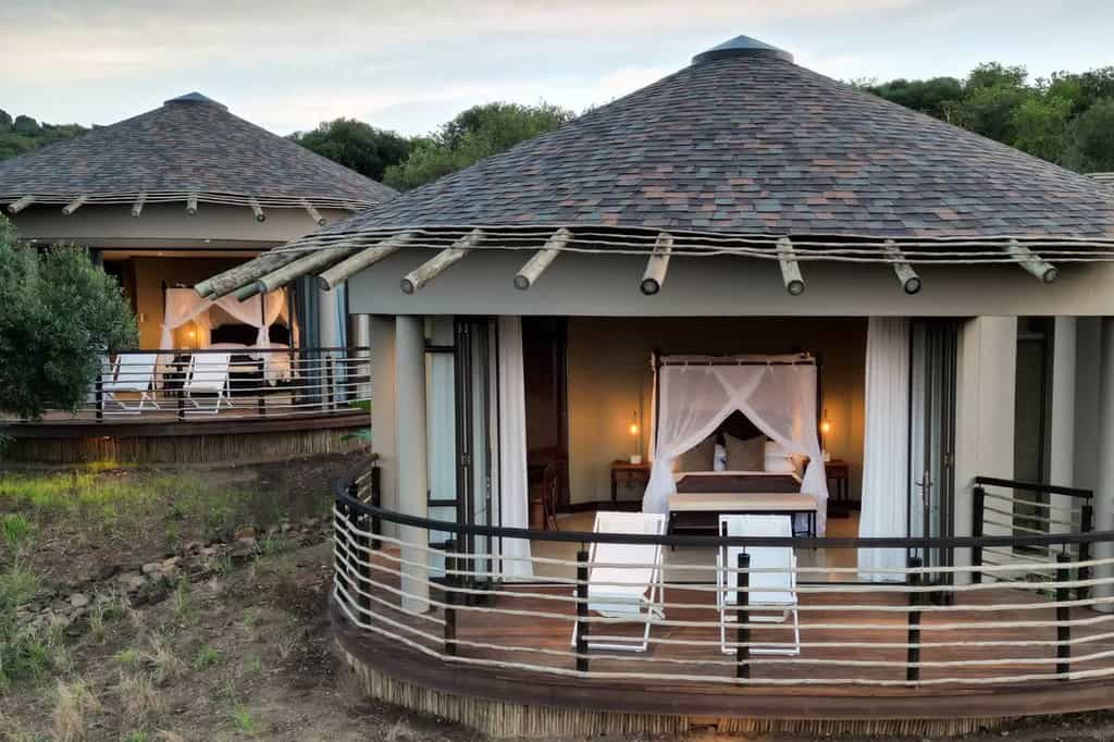 Each exclusive-use Royal Residence is magnificently designed and elegantly furnished for natural flow and sophistication, referencing a unique Zulu architectural theme. They are positioned for absolute privacy with never-ending views over the game reserve. The Royal Residences range in size from 587m² to 1,100m², and can accommodate up to ten guests. They have their own viewing deck with a swimming pool and jacuzzi, boma and fire pit. Guests have a butler and private chef, and enjoy Leading Hotels of the World dining and hospitality. Thanda’s highly experienced guides and trackers lead them during their unforgettable Big Five Safari.