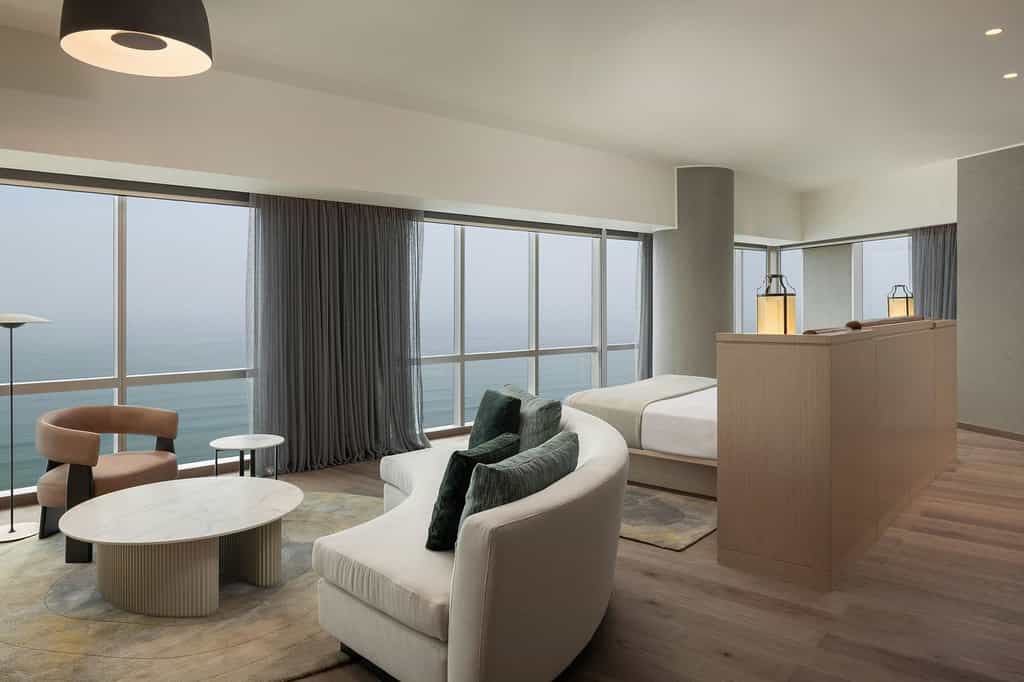 A luxury escape awaits you at the waterfront JW Marriott Hotel Lima. Situated within steps of the beach and Costa Verde, this hotel is also convenient to Lima attractions like the Cathedral of Lima and Larcomar entertainment center. The luxury hotel in Miraflores offers elegant rooms with plush beds and crisp linens. Spacious rooms and suites provide ocean views at this Lima luxury hotel.