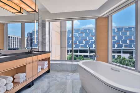 Recharge in luxury rooms and suites with indulgent bedding, mini-bars, marble bathrooms, ample workstations, free Wi-Fi and 24-hour room service. Our deluxe rooms are among the largest in India's NCR.