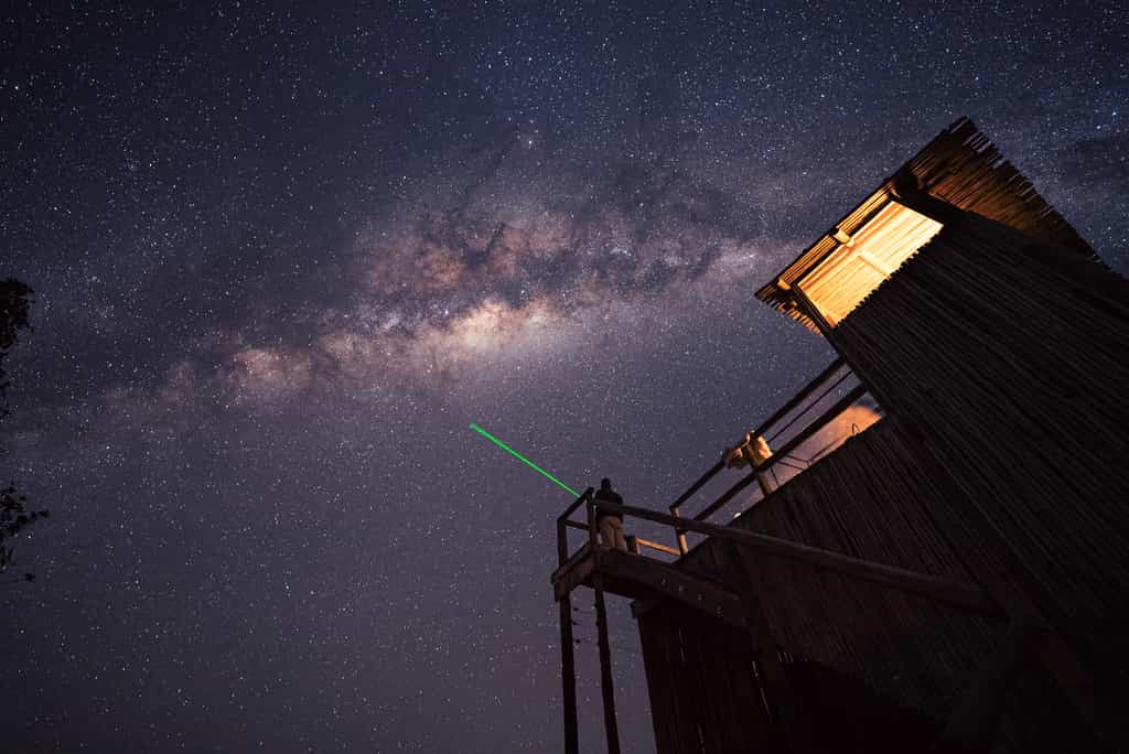 Wrapped around a large strangler fig tree, Kanana's central area is raised on wooden stilts. It includes three open plan areas, two comfortably intimate lounges and a large central dining area. Here a bygone era meets contemporary African design, with old pictures and carved African masks lining the canvas walls while bright fabrics add a splash of colour. Sit in a safari chair around the fire pit outside or relax in a recliner next to the swimming pool.