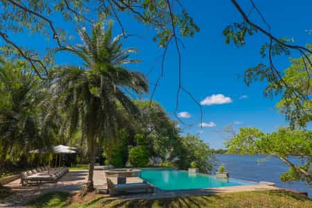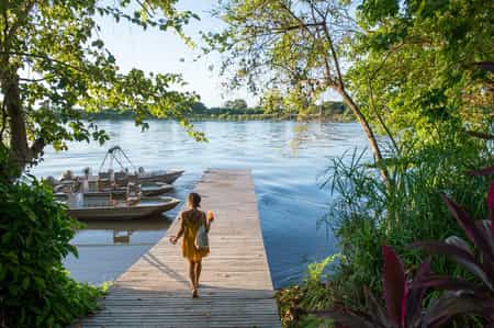 The double-storey thatched main area lies on the riverbank, with a few stairs leading to the first level, where you'll find the restaurant and bar with cool slate floors and rustic wooden chairs and tables. The upstairs loft has plenty of wicker furniture and superb views over the river. There's also a decent library, so grab a book and find a spot to chill between activities. On the river's edge is a lovely pool with sunloungers, and a shady patio.