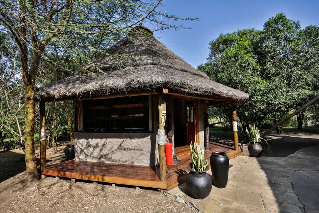 The large central area sits on a wide timber deck suspended above the sloping lawns (tangled vegetation on the river's edge protects against visits by crocs and hippo), and consists of a huge dining room and bar under thatch, with open sides offering stunning river views, and an outdoor dining terrace around a fire pit. The lounge leads out into the gardens, with a secluded swimming pool and sundeck, and a small beauty spa tucked beneath the trees.