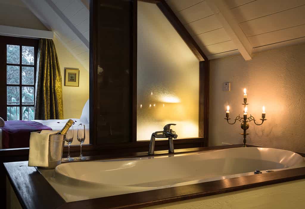 The old-world furnishings and decor seem to have been chosen over time, so the guesthouse has a real homely atmosphere. The rooms are welcoming, and you'll be tempted to snuggle in a corner with a book, or settle with the newspaper in the lounge. The dining room is quietly elegant – bathed with sunlight in the morning, and aglow with candlelight at dinner. The wide veranda is the best spot for sipping evening G&Ts to a chorus of crickets.