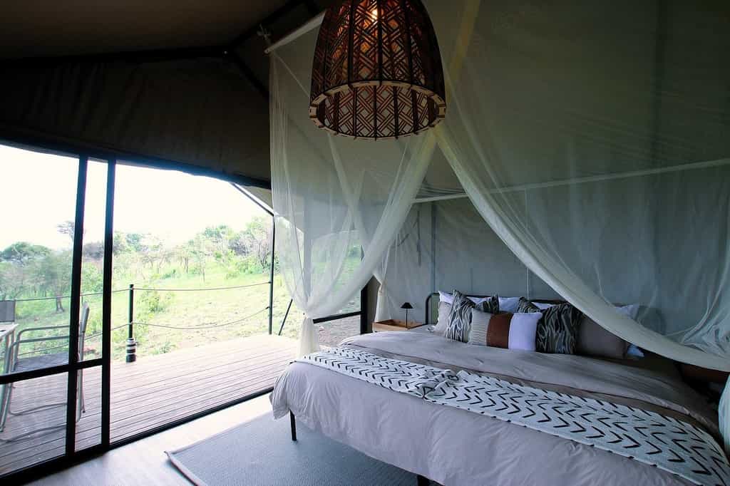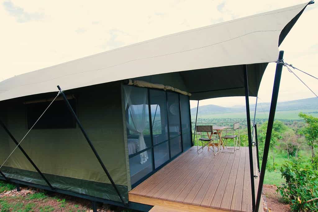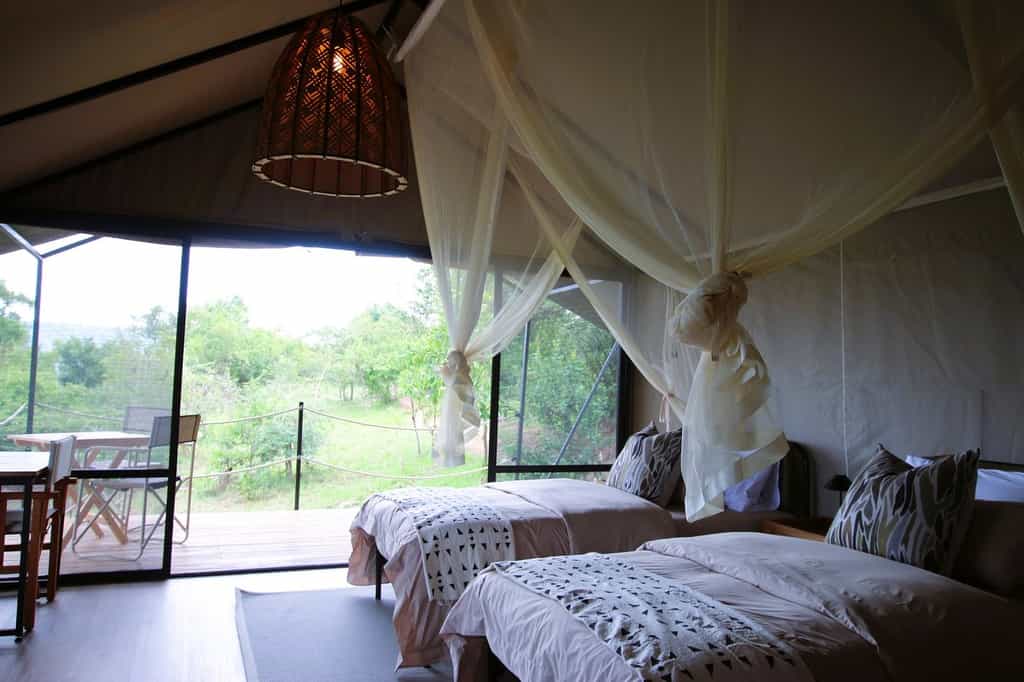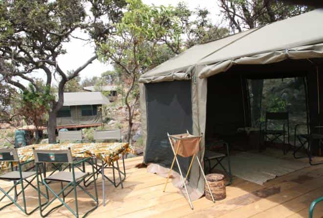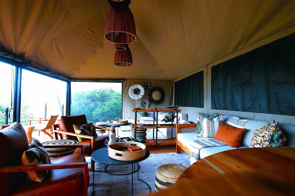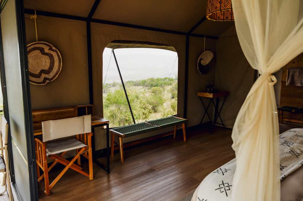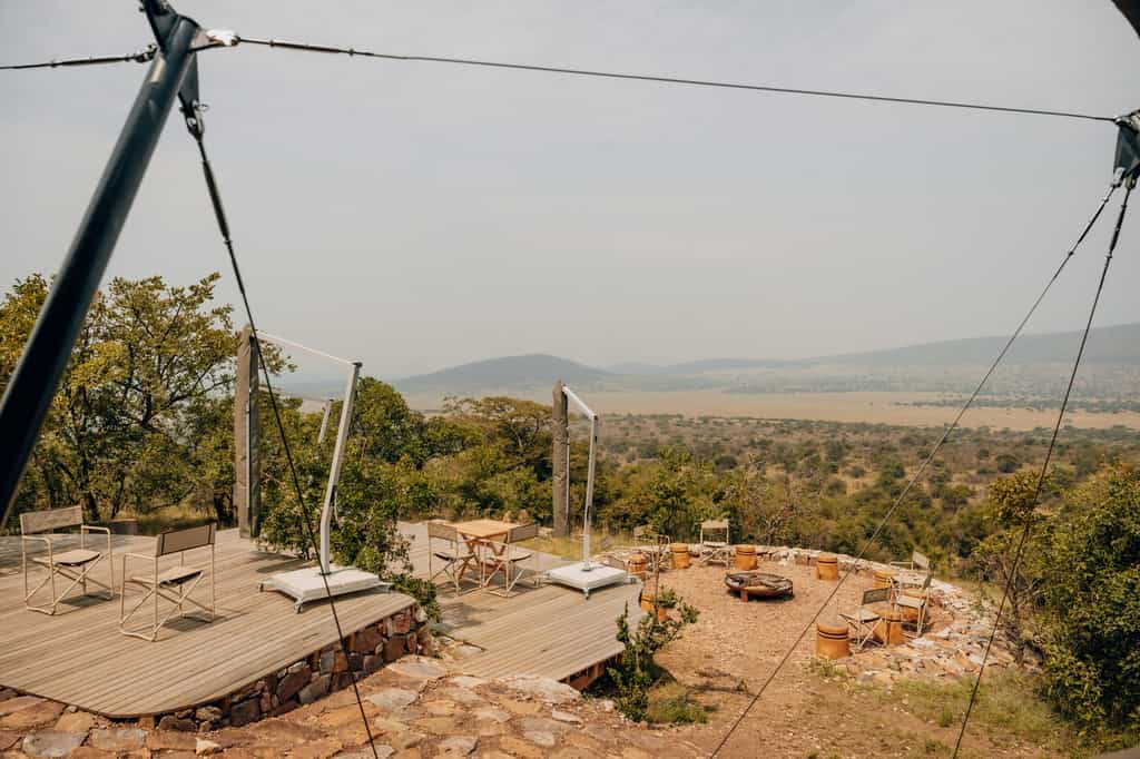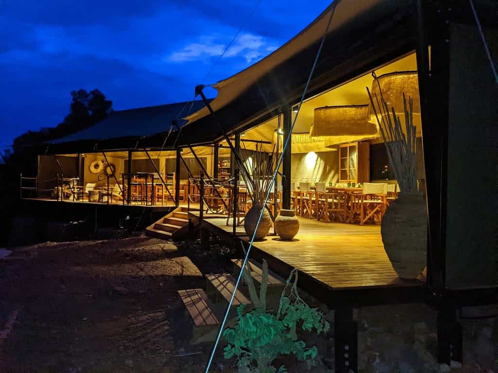 The main dining tent strikes the perfect balance between communal and cosy, with a lounge area that encourages that pre-dinner drink ritual while you watch the plain transform in the golden light. The outdoor firepit becomes the evening's focal point, surrounded by chairs positioned to make the most of those sweeping views across the Kilala Plain. Everything runs on solar power, from the lighting to the charging points, which adds to the sense of being properly disconnected from the modern world while still having access to the essentials.