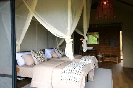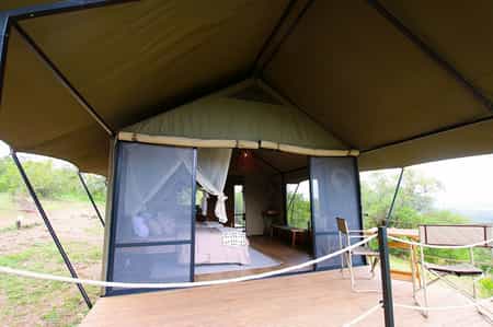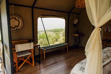 Seven canvas tents that can be configured as twins or doubles, each positioned to maximise privacy and those spectacular plain views. The ensuite bathrooms are surprisingly luxurious for a bush camp, with proper flushing toilets and reliable hot water - small mercies that become rather large comforts when you're this far from civilisation. The private outdoor showers are the real treat, offering the chance to wash while watching the landscape wake up or wind down. Each tent has its own charging station with USB and power points, because even in the wilderness, someone needs to keep their camera battery alive.