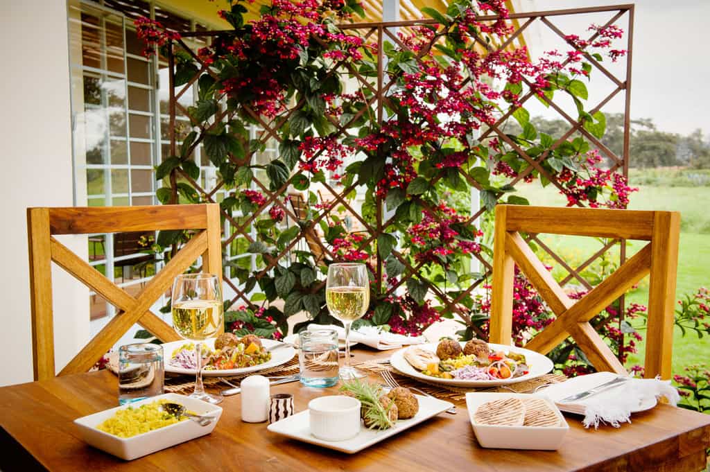 Get swept away by gorgeous views of the Mringa Coffee Estate and an unobstructed view of Mount Meru stretching out before you as you enjoy those first sips of coffee in the morning. When hunger beckons you to the onsite restaurant, gourmet meals await. You can grab your grub and head to the main room or dine in style on the large veranda, or simply sit back and enjoy a few tasty nibbles by the pool.