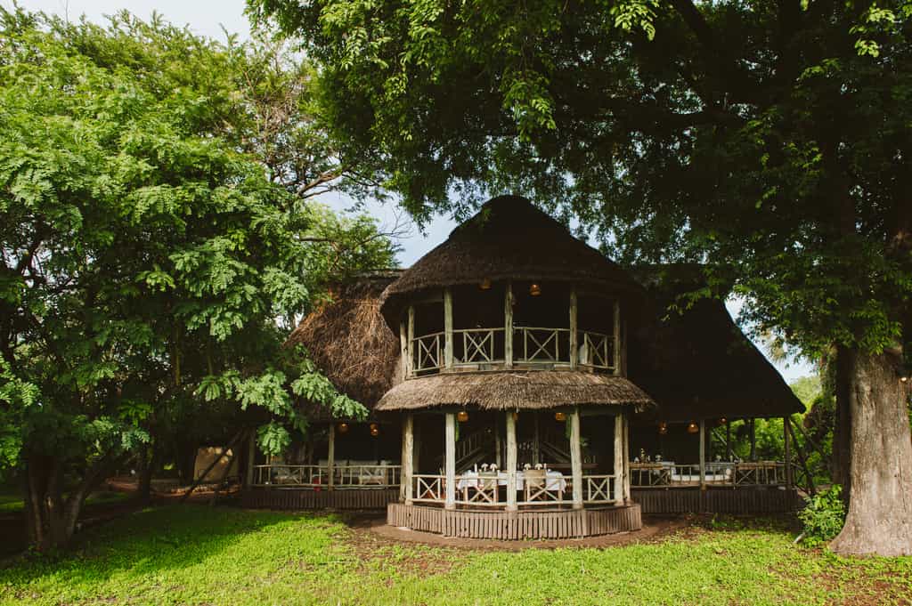 The double-storey thatched communal area is perfectly positioned for you to observe the game that moves constantly between the Katuma River and Katisunga Plains. Upstairs, the lounge maximises the view; downstairs are a small bar, several sitting areas with comfy leather seating, and a cosy dining area. Delicately woven rugs and red carpets add a touch of class. In front of the lounge, an open-air fire pit offers a 180-degree view of the plains.