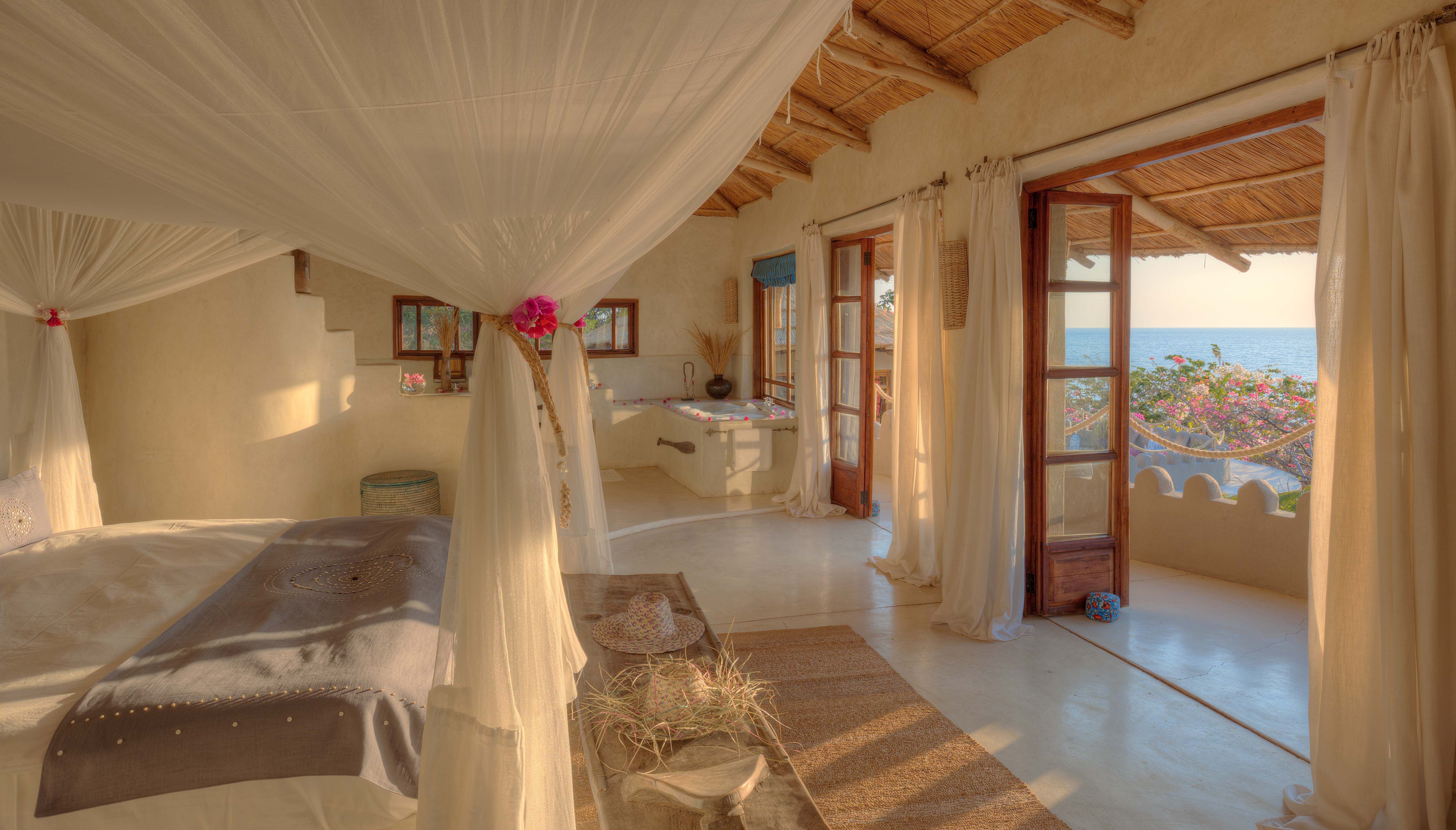The 12 stone-and-teak-framed cottages are dotted around the rocks and look out over the crystal-clear waters of Lake Malawi. Each is immaculately decorated, with dashes of pastel blue and pink (in keeping with the beach theme, of course), polished concrete floors, big beds, sunken bathtubs and obligatory loo with a view. All are a little bit quirky – some are built into the rocks, some are accessed by wooden walkways and some are larger than others – but all are heavenly. We highly recommend diving straight into the lake from your private terrace and swimming to the beach for a signature Eggs Benedict at breakfast!