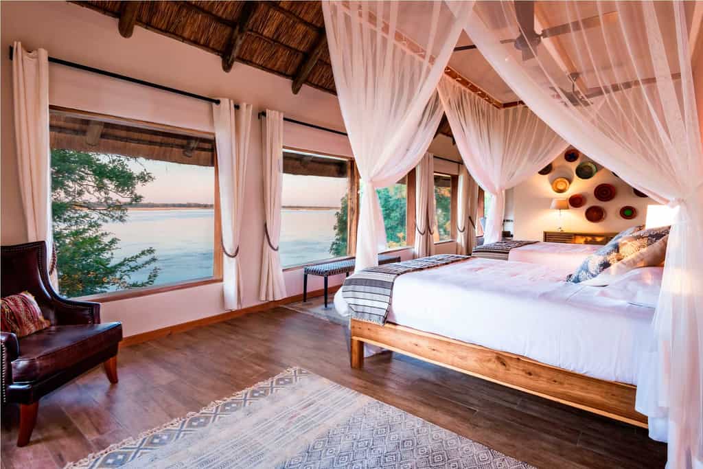 Kayila Camp is a 4-suites camp that combines tradition with comfort. Situated on a ridge on the banks of the Zambezi, Kayila offers sweeping views of the Mana Pools National Park on the opposite bank.The camp has a beautiful outdoor lounge area that overlooks the fire-pit deck and swimming pool, providing an excellent vantage point to experience the magic of the Zambezi River. Although Kayila is very luxurious it also has a relaxed and informal feel. The culinary experience is characterized by no frills home cooking with the option of some local delicacies. By virtue of its location and layout, the camp offers a plethora of activities and experiences: from “River to Ridge” walks through the property to sunsets on the escarpment with panoramic views of the river as well as sleep outs over watering holes giving guests the opportunity to experience a close up look into the exhilarating nocturnal world of Kayila.