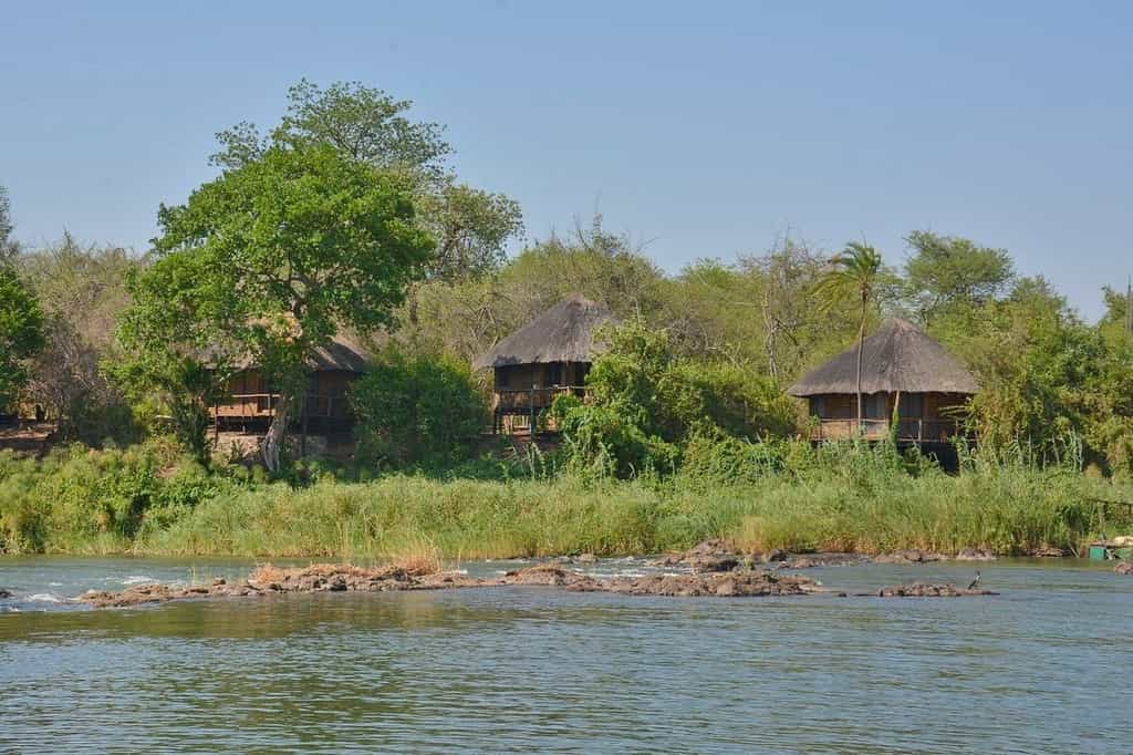 Sandy paths lead from the main area to eight en-suite thatched wooden chalets set beneath a canopy of riverine trees, slightly back from the water’s edge. Each has a private outside viewing deck overlooking the Zambezi rapids, and the wild interior of Impalila Island at the back. Interiors are classic bush style – exposed thatch and rich timber, with creamy drapes of mosquito netting covering the comfortable twin or double beds, and ceiling fans for the intense summer heat.