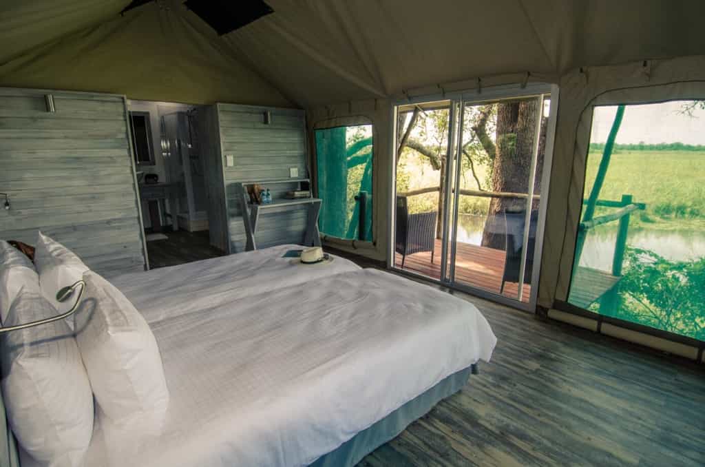 After a long day of exploring, coming back to an open-air lounge that hangs over the Kwando River and offers a cool and spacious area to relax in is just what the doctor ordered. Sit back and chat with friends and family, lose yourself in a quiet book, or recline on the large, outdoor deck, camera at the ready and cocktail in hand, gazing out at Africa's abundant wildlife and listening to birdsong in the trees.