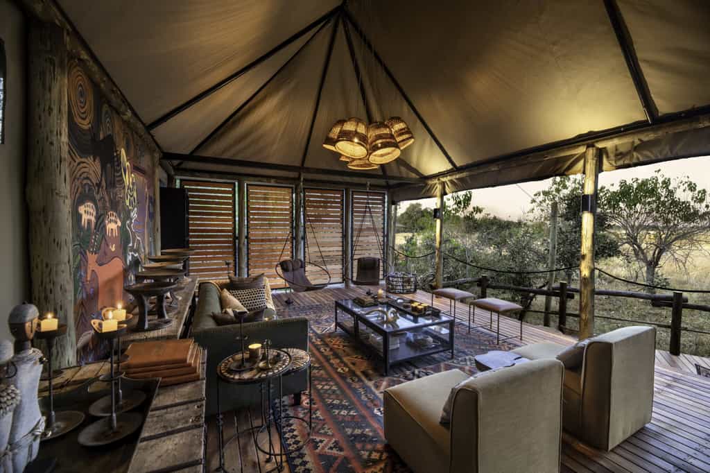 The camp consists of six beautifully-appointed en-suite (the deep baths are heavenly) tents and one bricks-and mortar family cottage, distributed evenly along the lagoon. The furnishings follow the same raw hardwood themes as the central tents, creating a warm earthy feel. There's just the right amount of homely comfort that does not detract from the environment beyond. The windows have their own natural air conditioning. Covered by mosquito netting, with canvas flaps, you can leave them open for the cool summer breezes, or close them in winter for warmth. End your day relaxing on your private deck, beverage in hand.