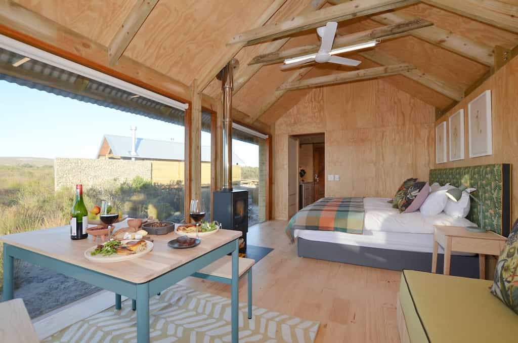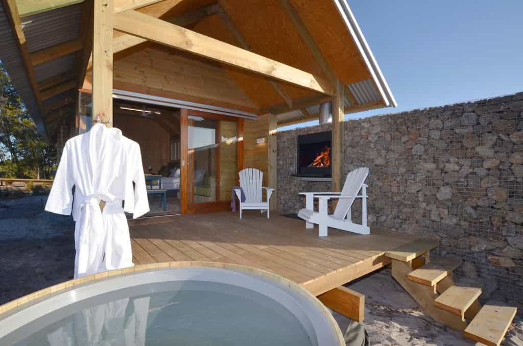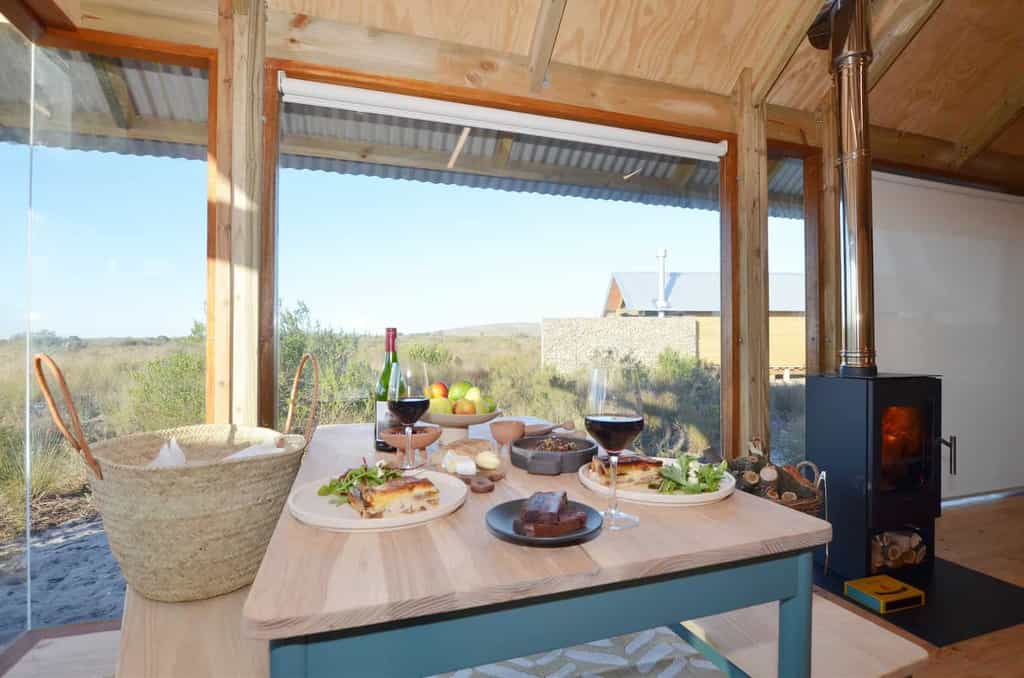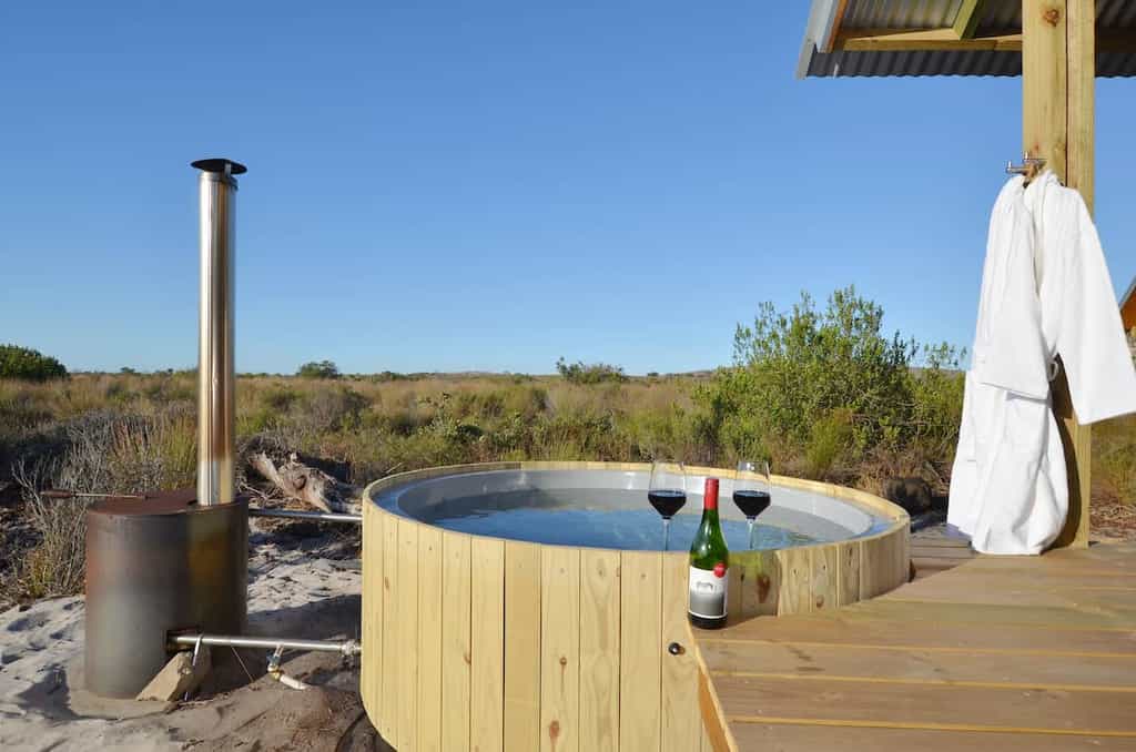 On the sea side of the Nature Reserve discover the wood and stone Fynbos Cabins, simple luxury beneath vast, blue West Coast skies. The surprisingly spacious cabins blend discreetly into the landscape. Glass walls yield unobstructed views of Cape floral fynbos. A private balcony with your own wood fired hot tub is the final step to fully immersing yourself in nature.