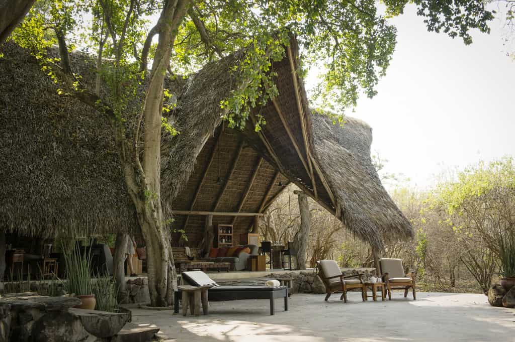 Simple spacious and elegant is the best way to describe the communal spaces of Kiba Point. Built from stone and cement with a thatched floor to ceiling roof, there are plenty of spots from which to marvel at the scenic views ahead. The lounging space has plump pillows furnishings, dark wood tables and shelving, as well as plenty of traditional African artworks and collectables. The dining area is large with an enormous table in the centre, surrounded by chairs. Enjoy relaxing with a book from the library (under one of the ceiling fans!) or on the viewing deck.