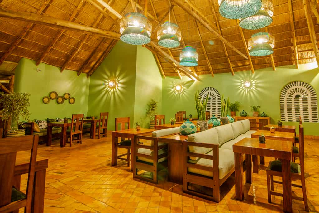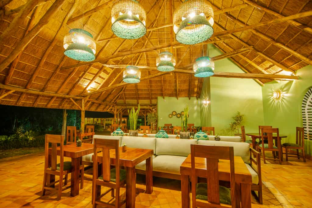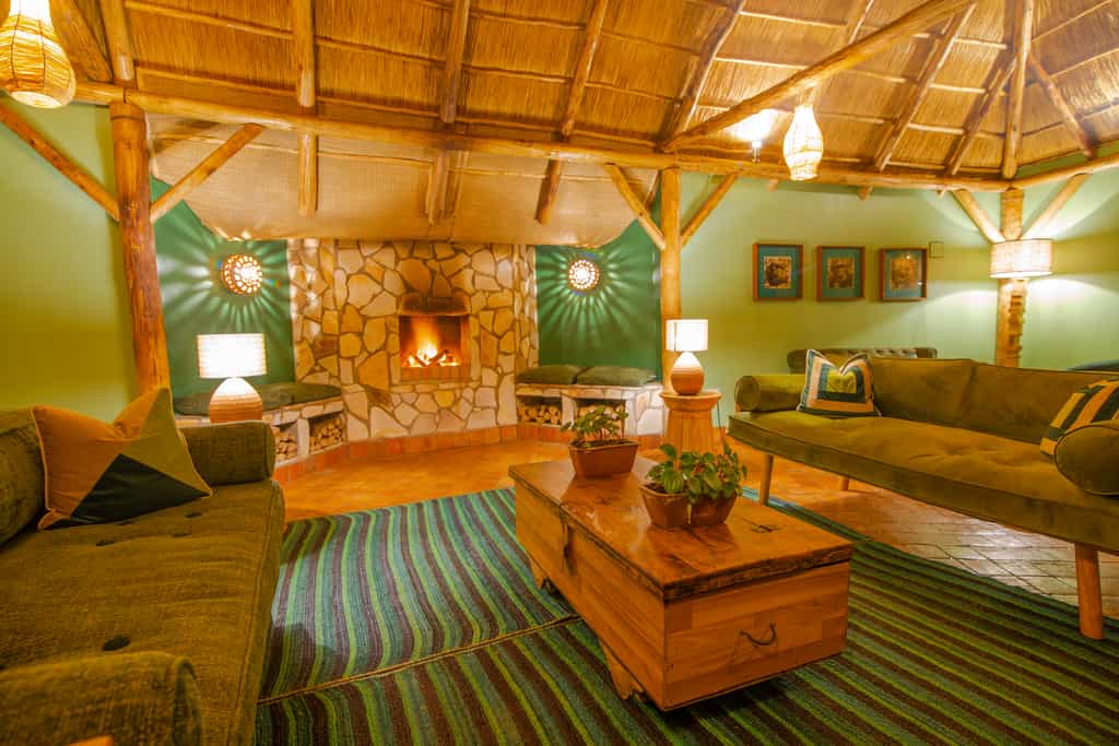 Meals are served in the dining area, with the menu comprising wholesome, tasty dishes with both local and international flavours. Have coffee and drinks at the well-stocked bar adjacent to the dining area, then settle back in the lounge area's large, comfortable chairs and couches and listen to the sounds of the forest while you charge your electronic devices. Or cosy up beside the unique fire cave outside and exchange stories of the day’s adventures.
