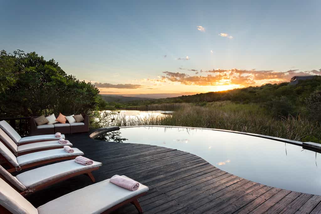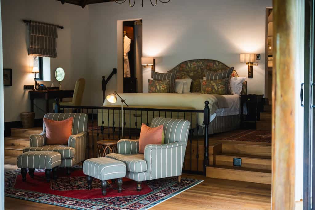 Each of the 10 suites is positioned for maximum privacy and optimal game viewing, with private decks that feel like your own personal observation post. The heated plunge pools are perfect for a dawn dip whilst watching the early morning wildlife parade, and the outdoor showers provide that authentic bush experience without sacrificing an ounce of luxury. Inside, natural textures and refined finishes create spaces that feel both sophisticated and utterly comfortable. The bathrooms are particularly indulgent affairs with deep soaking tubs positioned to catch glimpses of the reserve beyond, whilst in-room coffee stations ensure you're properly caffeinated for whatever the day's wildlife encounters might bring.