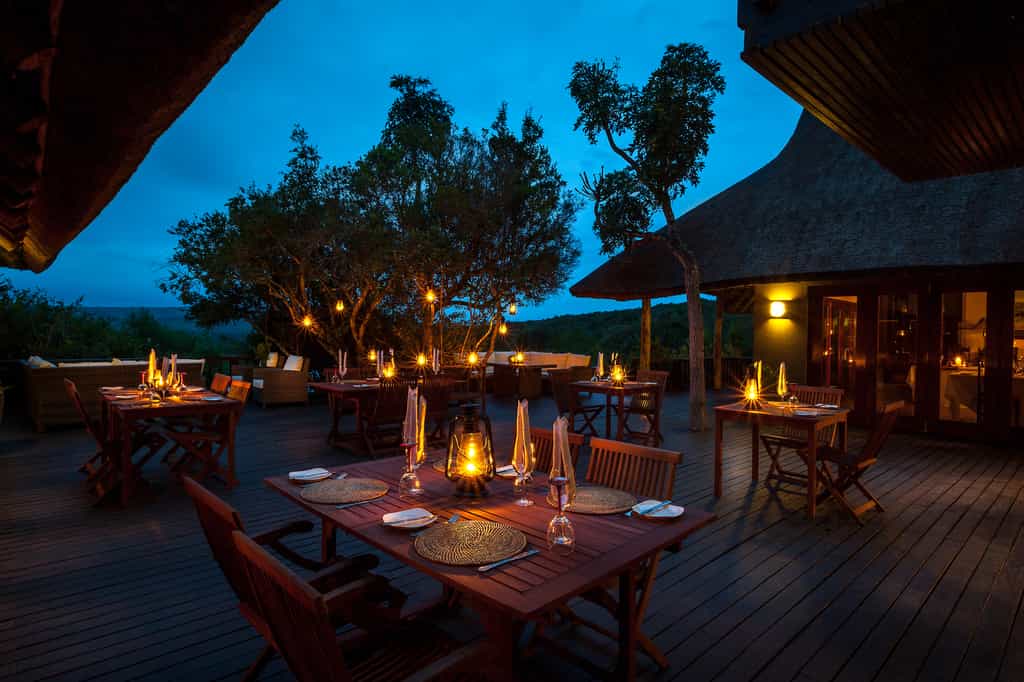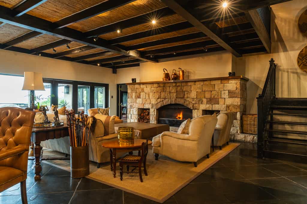 The main areas flow effortlessly from indoor to outdoor spaces, with the cocktail bar positioned perfectly for waterhole surveillance (purely for scientific purposes, naturally). The dining room opens onto expansive terraces where meals are served with views that change by the hour, depending on which creatures have decided to drop by. The spa boasts panoramic vistas that make it rather difficult to concentrate on relaxation when there's a parade of game wandering past your treatment room window. There's also a well-equipped gym for those who prefer their cardio with a view, and a private library that's ideal for losing yourself in a good book between wildlife viewings.